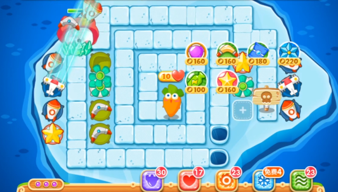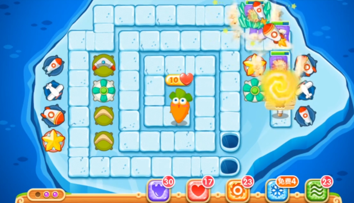 这关想拿金萝卜必须同时完成三个额外任务,所以每一步都要规划好。开局火箭清障、中期魔法球主力输出、后期减速控场,按这个节奏来就能稳稳过关。如果第一次没成功也别急,多观察怪物路线和炮塔覆盖范围,微调几次就能找到最适合自己的打法啦!